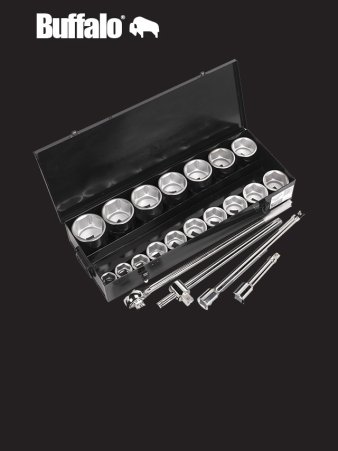 Model No: S0768 Contents : 1"Sq Drive 12-Point Sockets; 36, 38, 41, 46, 50, 54, 55, 58, 60, 63, 65, 67, 70, 71, 75, 77, 80mm, Extension Bars; 200, 450mm, Sliding T-Bar, 1"Sq Drive Twist Reverse Ratchet Wrench